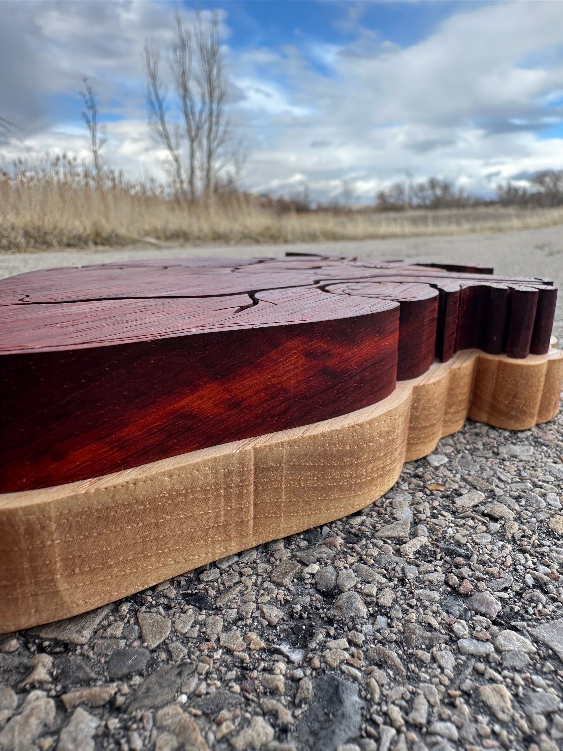 each piece is truly one of a kind- made from oak and the richly colored african padauk hardwoods. please understand that the color of the wood may naturally vary.