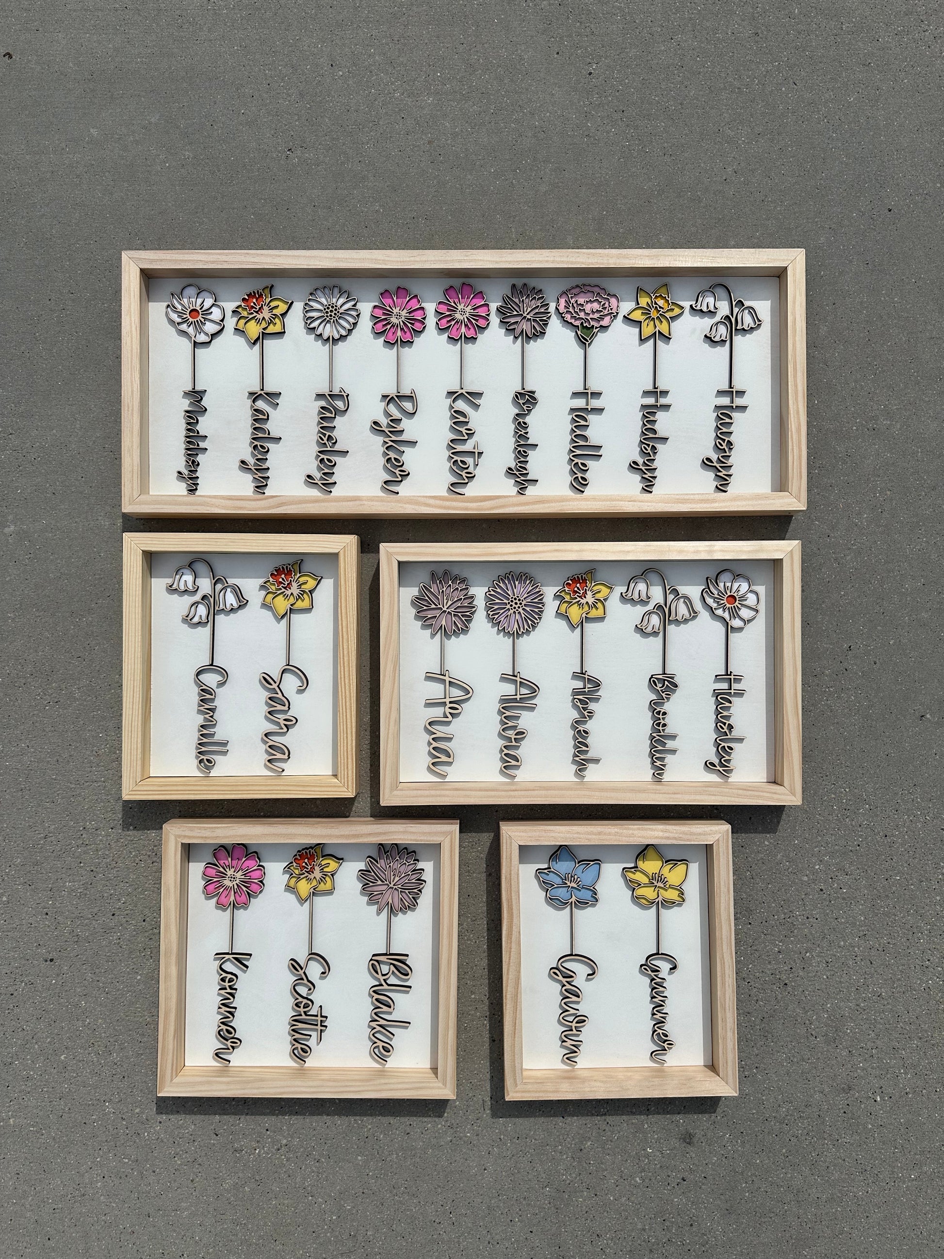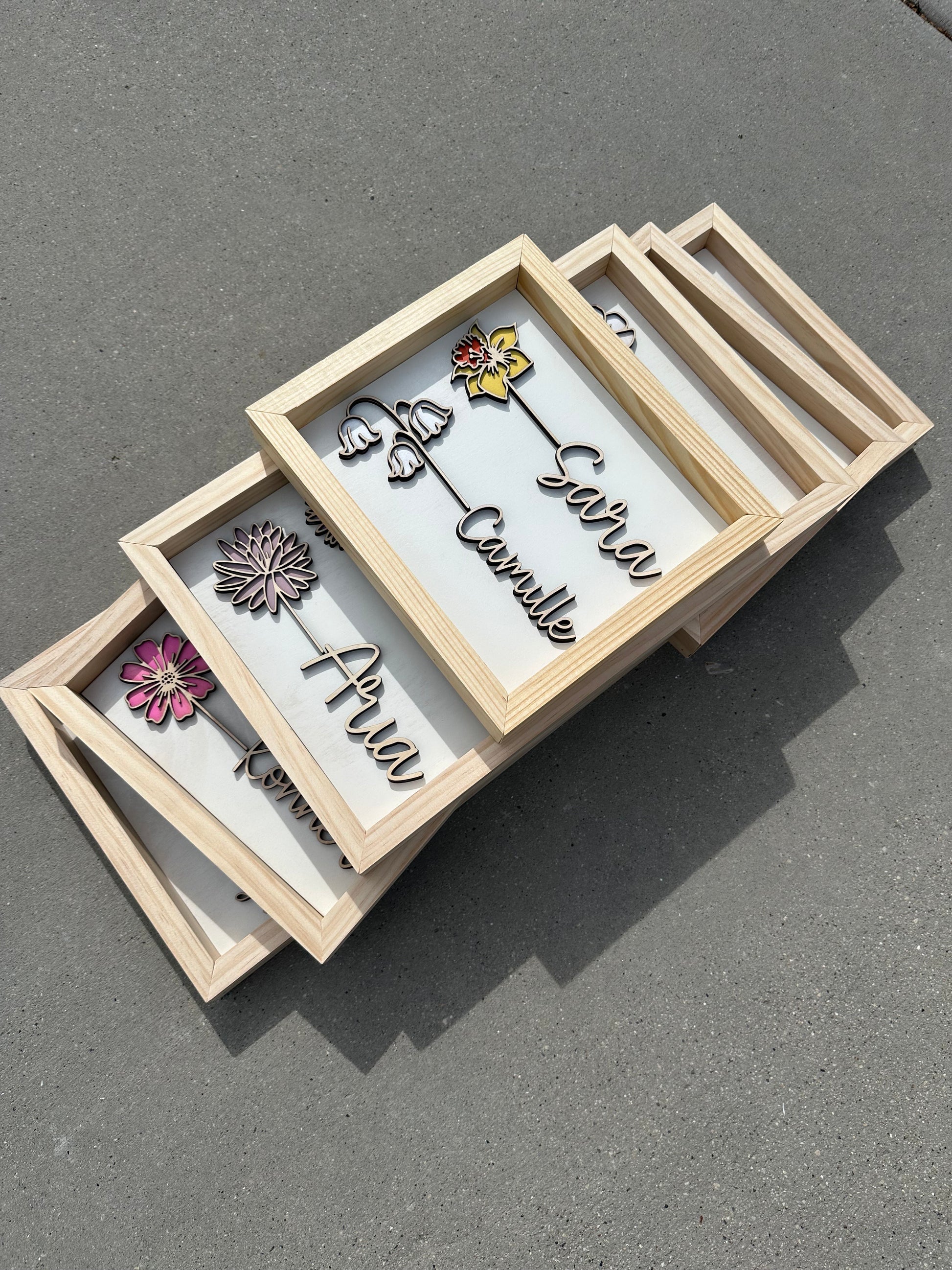 a keepsake that blooms with meaning. each sign features your chosen name alongside their matching birth flower- hand drawn, made out of wood, and painted with care. these pieces feel personal and timeless and they are great for gifting- mom, grandma, sister, new mom, etc.